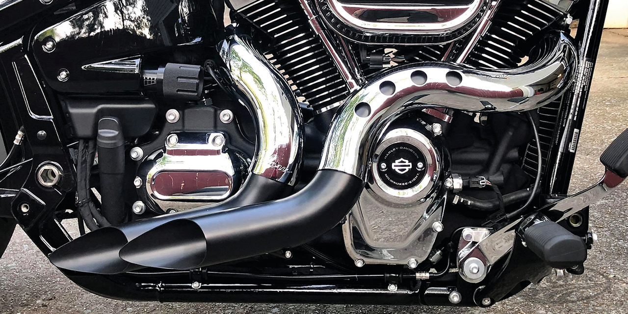 Blow three-step exhaust systems for Milwaukee Eight models are designed to work with the exhaust inertia pulse and give a broad power band on 107CI 131CI Milwaukee 8 engines. Three-step headers are not be confused with straight drag pipes. These are true high performance exhaust systems. We encourage you having your engine dyno tuned after installation by a professional dyno tuner for maximum performance. Available in solid chrome, solid flat black, chrome with flat black heat shields or flat black with chrome heat shields. Note: these exhausts do not fit hydraulic clutch equipped models. Please check your local regulations about exhaust systems prior to purchasing.