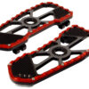 Bagger floorboards are CNC machined from top grade billet aluminum and beautifully black anodized. They are 12.6″ (32 cm) long and 5″ (12.5 cm) wide. Bagger footrests are direct bolt-on replacements for several Harley-Davidson models: 1986-up touring and trike models; 2012-16 FLD’s; 1986-17 FL Softail models. They are very easy to install, reusing your stock Harley mounting hardware.These sleek floorboards feature three integrated spike inserts to allow excellent foot grip. Available in solid black or with edges anodized in different colors to complement the colors of custom bike project!
