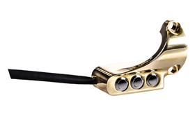 These 3-button switch clamps are designed to work in conjunction with our Custom Hand Controls. Housings are machined out of billet aluminum and brass, while push buttons are made out of stainless steel. For 1″ handlebars.
