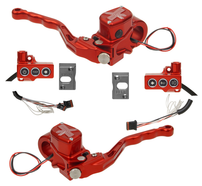 hand controls RR90X radial brake master cylinder, hydraulic clutch, switches – CAN Bus A for 2011-17 Softails, 2012-17 Dynas – red