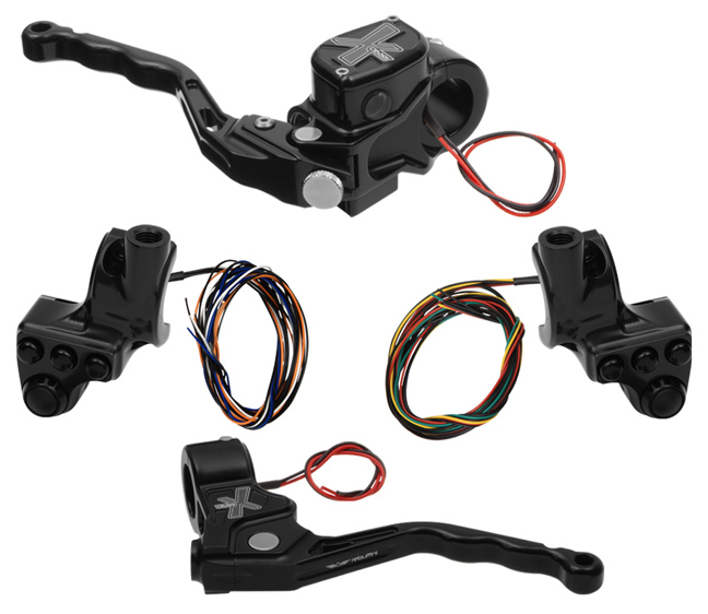 hand controls RR90X radial brake master cylinder w/ brake switch for dual caliper + cable clutch w/ switch + 4-button switch clamps w/ mirror hole – black