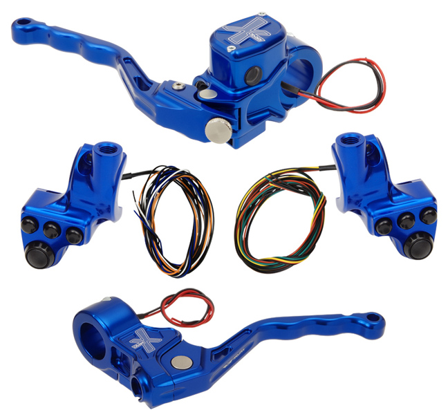 hand controls RR90X radial brake master cylinder w/ brake switch for dual caliper + cable clutch w/ switch + 4-button switch clamps w/ mirror hole – blue