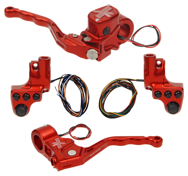 hand controls RR90X radial brake master cylinder w/ brake switch for dual caliper + cable clutch w/ switch + 4-button switch clamps w/ mirror hole – red