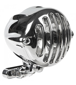 Our Alcatraz headlight housing and grill are available in different finishes, so you can get the custom look and color combination that best matches the style of your bike. It features a 4 inch diameter and will look great on any old school chopper and bobber. Headlamp and mounting bracket are included. A specific headlight bracket for Springer models is sold separately.