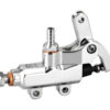 This super-compact master cylinder with lever was specifically designed to be used in conjunction of our weld-on hand controls, so they can be used as brake or hydraulic clutch levers. Machined out of billet aluminum it can be easily hidden on the bike for a super-clean look. It can be welded vertically or horizontally under the seat, under the tank or in any other place hidden or not. This 9/16″ bore master cylinder can be used with single 2-piston caliper, 4-piston caliper, 6-piston caliper or dual 2-piston calipers. Mounting bracket will need to be fabricated and welded to the desired location. Fluid reservoir not included. NOTE: we suggest to use DOT 4 brake fluid. in any case do not use silicon based oils.