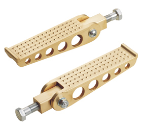 Cast brass knurled pegs with universal mount. The universal folding mounts allow to install these pegs as rider or as passenger footpegs. Sold in pairs.