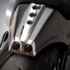 This rear fender was designed to fit on all Softail models made from 2008 to 2017, except Breakout’s. It is made of fiberglass and features a mini super-bright LED tail light. The stock Harley seat will not fit, so you will need a local upholstery shop to fabricate one on the seat base we provide. Kit includes rear fender, LED taillight and seat base. Ready for prep and paint. Please note this rear fender cannot carry a passenger.