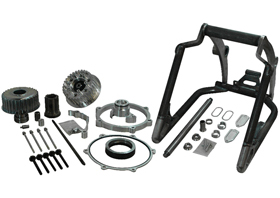 Our swingarm conversion kits will enable you to mount a 330 tire on your stock 2008-11 twin cam rocker without doing any modifications to the frame! Kit can be installed only in conjunction with a 20mm secondary belt. It can fit up to 12.5 wide rims. Thanks to this innovative kit you will be able to mount a super-wide rear tire, without any modifications to your stock frame, still keeping front and rear wheel properly lined up for safe and comfortable riding. Kit includes swingarm, axles and all necessary components for the primary offset. NOTE: kit does not include belt, wheels, rear pulley, rotors, tires or rear fender.
