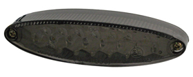 Ice taillight features clear LED bulbs, which turn red when you brake or turn on the taillight. Features two brightness levels for run and brake light. Available with clear, red or smoked lens. Taillight dimensions: width 4”, height 1-1/16”, depth 2-1/4”.