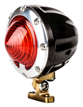 The Juicer taillight will look great on any old school chopper and bobber. Housing and ring are available in different finishes, so you can get the custom look and color combination that best matches the style of your bike. Taillight features 15 super-bright LED’s. CNC machined out of billet aluminum and brass.