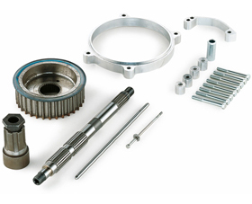 Our transmission offset kits will enable you to mount an extra-wide tire on your stock 2000-06 Twin Cam Softail. Kit includes all necessary components for the primary offset. NOTE: kit does not include swingarm, belt, wheels, rear pulley, rotors, tires or rear fender.