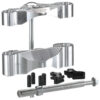 These massive triple trees are CNC machined from top quality billet aluminum and are available with either +0, +3 or +5 degrees of built-in rake (just specify your choice when ordering). They are 11-3/8″ wide (290 mm) to allow the installation of extra wide front tires (up to 6″ / 150 mm wide front tires). These European style triple clamps will give your custom V-Rod a mean and muscular hardcore look! Kit includes triple trees, wheel axle and caliper brackets. Available in machined finish, polished or black.
