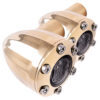 Juicer turn signals will look great on any old school chopper and bobber. Housings and rings are available in different finishes, so you can get the custom look and color combination that best matches the style of your bike. Each turn signal features 6 super-bright LED’s. CNC machined out of billet aluminum and brass. Sold in pairs.