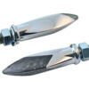 Our 3D torpedo LED turn signals have pure flowing lines and feature a new innovative design. They feature clear LED bulbs, which turn amber when you activate them. Housings are available chromed or black with clear or smoked lenses. They fit in 10mm mounting holes and can be used as front or rear turn signals. Dimensions: 2.45″x 0.70″x 0.90″. Sold in pairs.